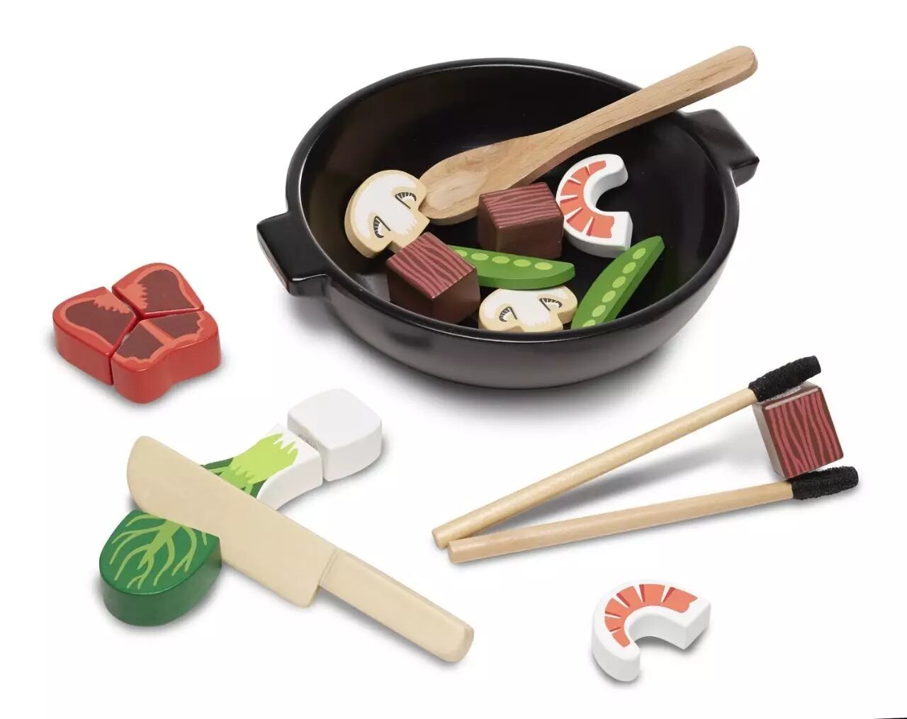 作为厨师你可以用套装中的木刀切碎肉、红辣椒和白菜,让后向其中加入虾、蘑菇和荷兰豆开始翻炒。在翻炒和上菜时要用到环形和钩形的筷子。