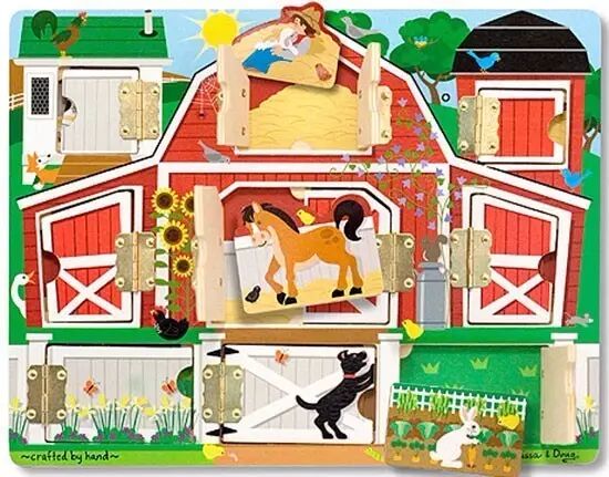 材料是木质的,色彩搭配很亮眼但不俗气,有九扇可爱的带铰链的,拉开它就可以看到一个可爱的小动物,或者是小人。它们都有磁性的,可以移动,也可以取下。产品规格是:18.7 x 12.3 x 1.4 inches。