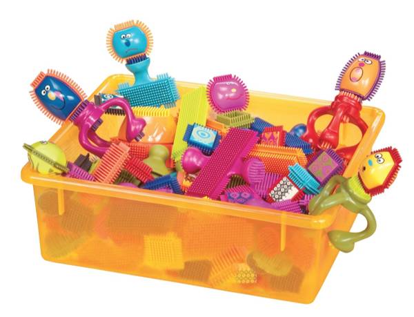 属于拼插胶质积木,有75个原件,包括人偶头、旋转座等。大小适中,2~6岁的宝宝玩很容易。颜色鲜艳,质地柔软,可以拼成房子、汽车等等,拆卸方便,配有小盒子收纳。
