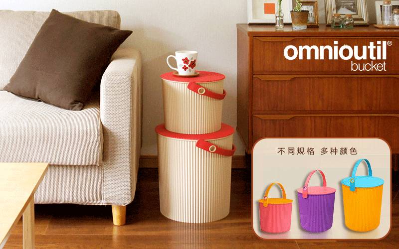 它是一个好用、实用、又耐用的漂亮收纳桶,它可以收纳你能想到的家里的任何东西,吃的喝的也是可以哒,它还是个能承重150kg的凳子,摆在家里当装饰也是一把好手哟。