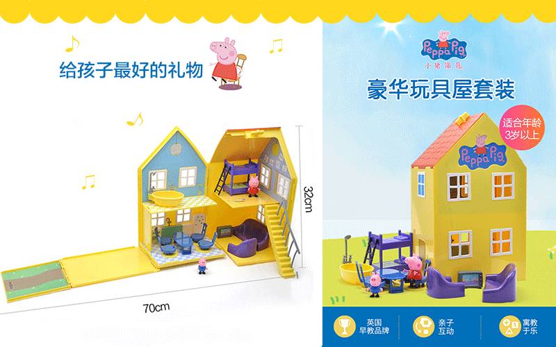 它简直就是一个微缩版的家,里面儿童房,洗手间,客厅,厨房,家具,家电一应俱全,佩奇and乔治造型都很还原哦,非常适合玩儿角色扮演游戏,佩奇迷们,一定会喜欢的。