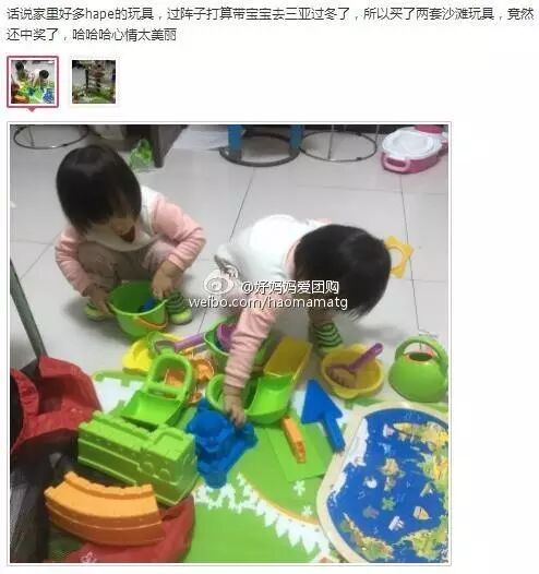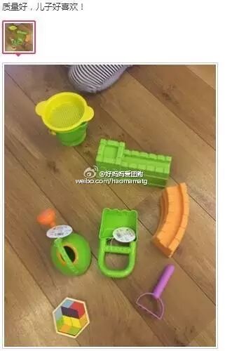 hape挖沙子 我找到14年的图了 我们家这套工具还在 一点没坏 现在2个小孩子可以一起玩 质量真心好 当初我记得比现在团价还贵 好像是75 还是6样的 现在开团的 9样 10样 才69还有收纳袋 所以很划算的 这次有三种套餐 根据自己需要选