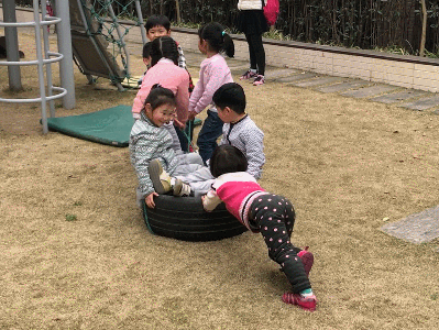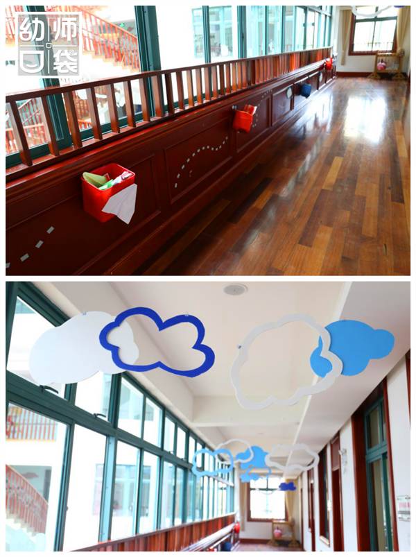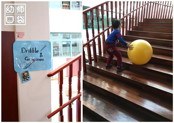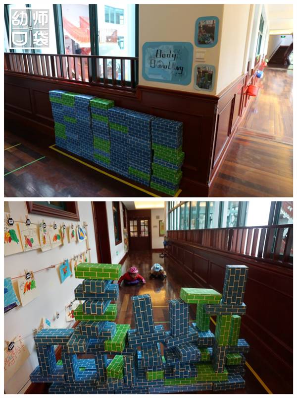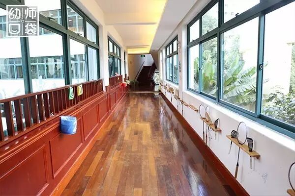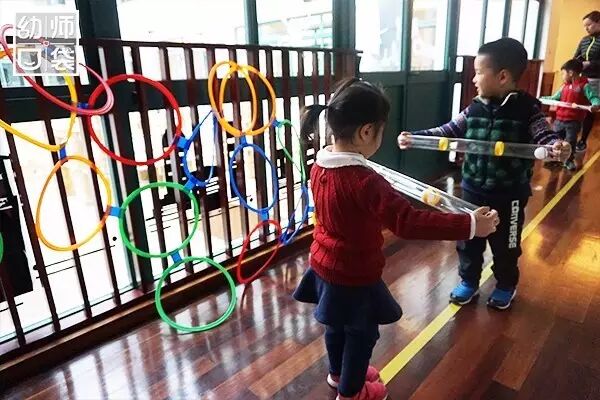 通过实地体验之后,我发现原来室内运动同样也能发展幼儿各种能力。冰厂田幼儿园的老师们巧妙运用空间布局丝毫不浪费幼儿园的每寸面积,在走廊里、在转角里给孩子们设置了丰富又有趣的室内运动项目,许多安排灵巧又便捷,孩子们一走出教室就是游乐的场地。