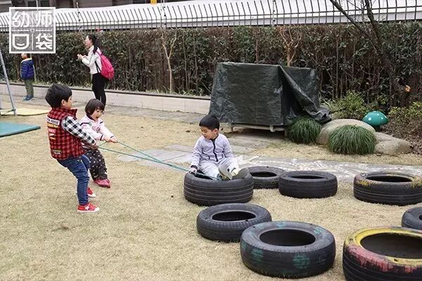 去往特色活动室的时候,正巧遇上了在户外运动的孩子们,他们正热火朝天地玩耍,跑、跳、拖拉、推、攀爬、平衡……借助着各类器材和老师的自制教玩具,每个孩子都尽情释放着自己的体能,1b+老师忍不住驻足捕捉了几张。