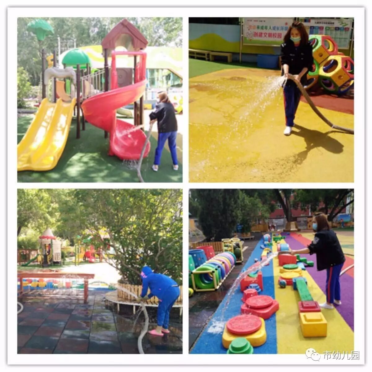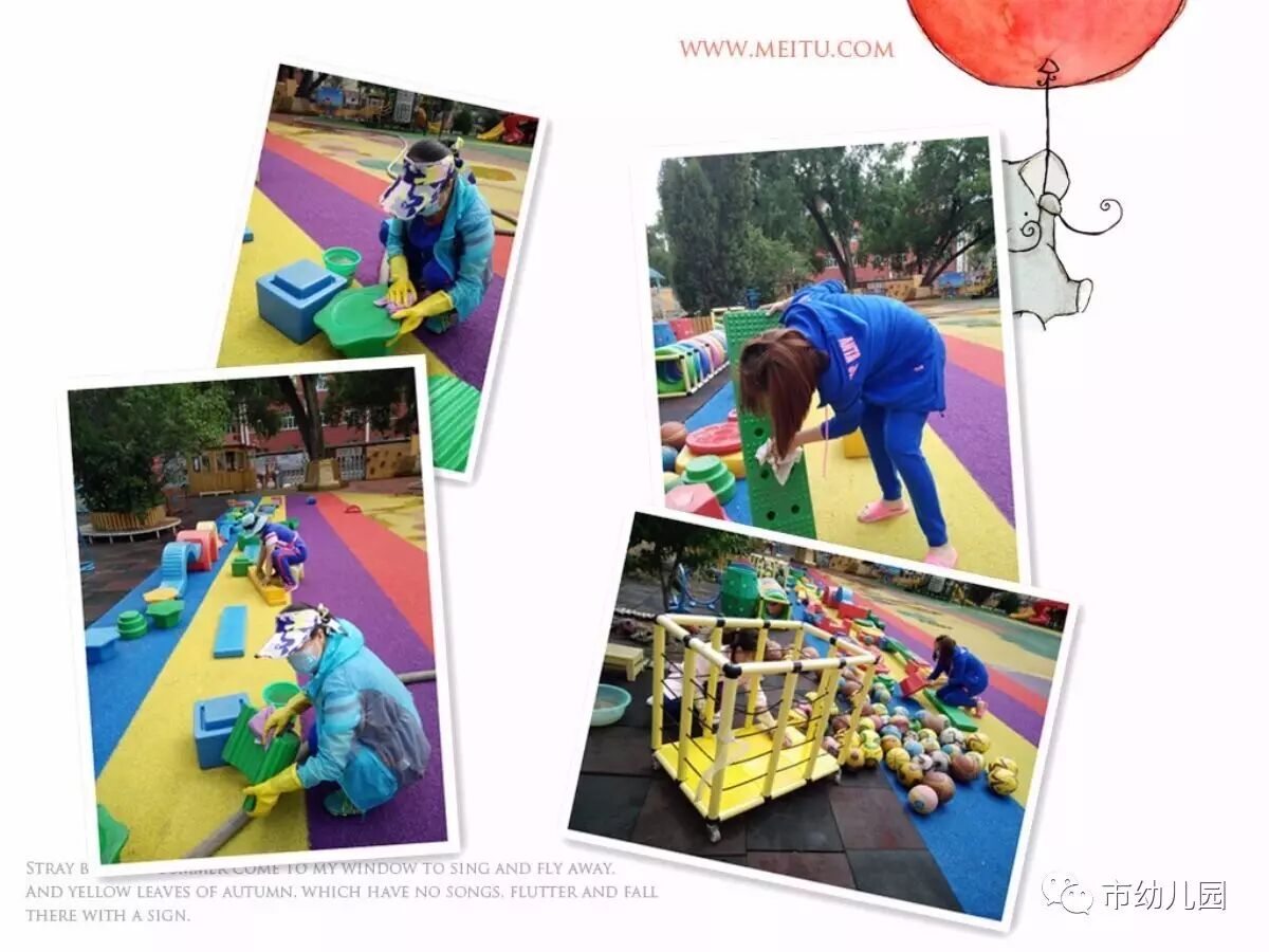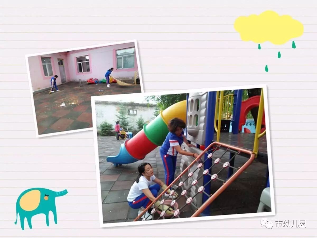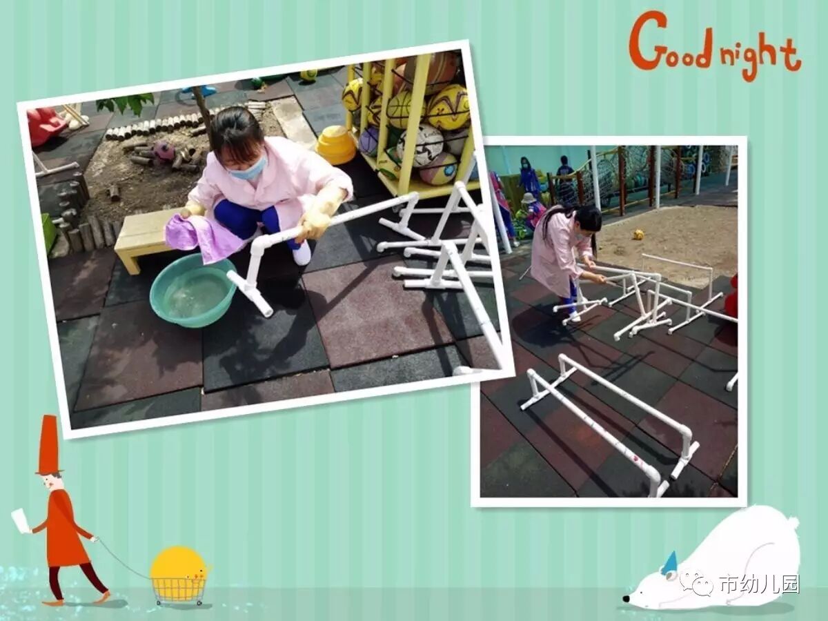 有了这些老师们的辛苦付出,市幼的孩子们一定会在更安全、更干净的玩耍中快乐的成长。