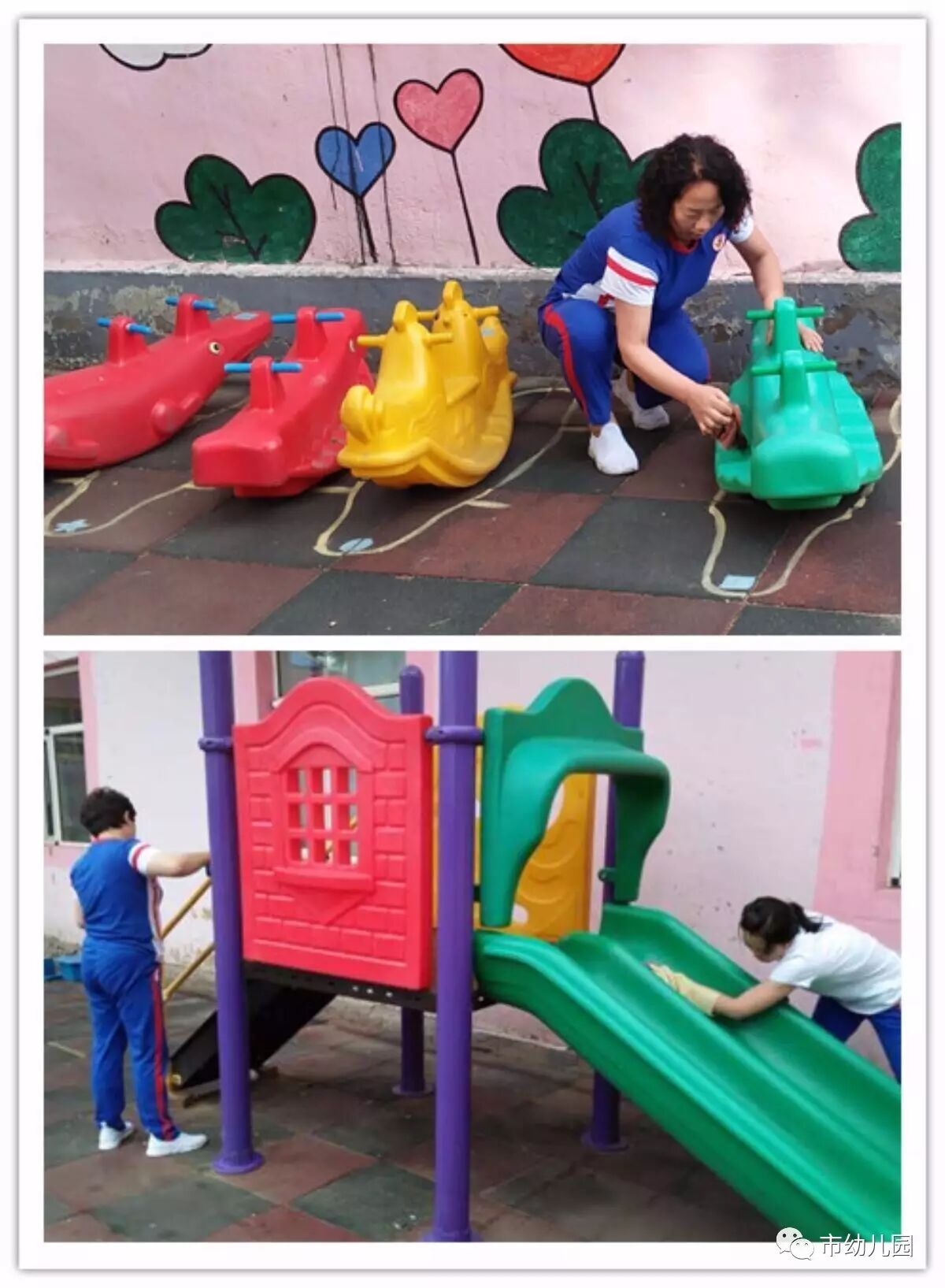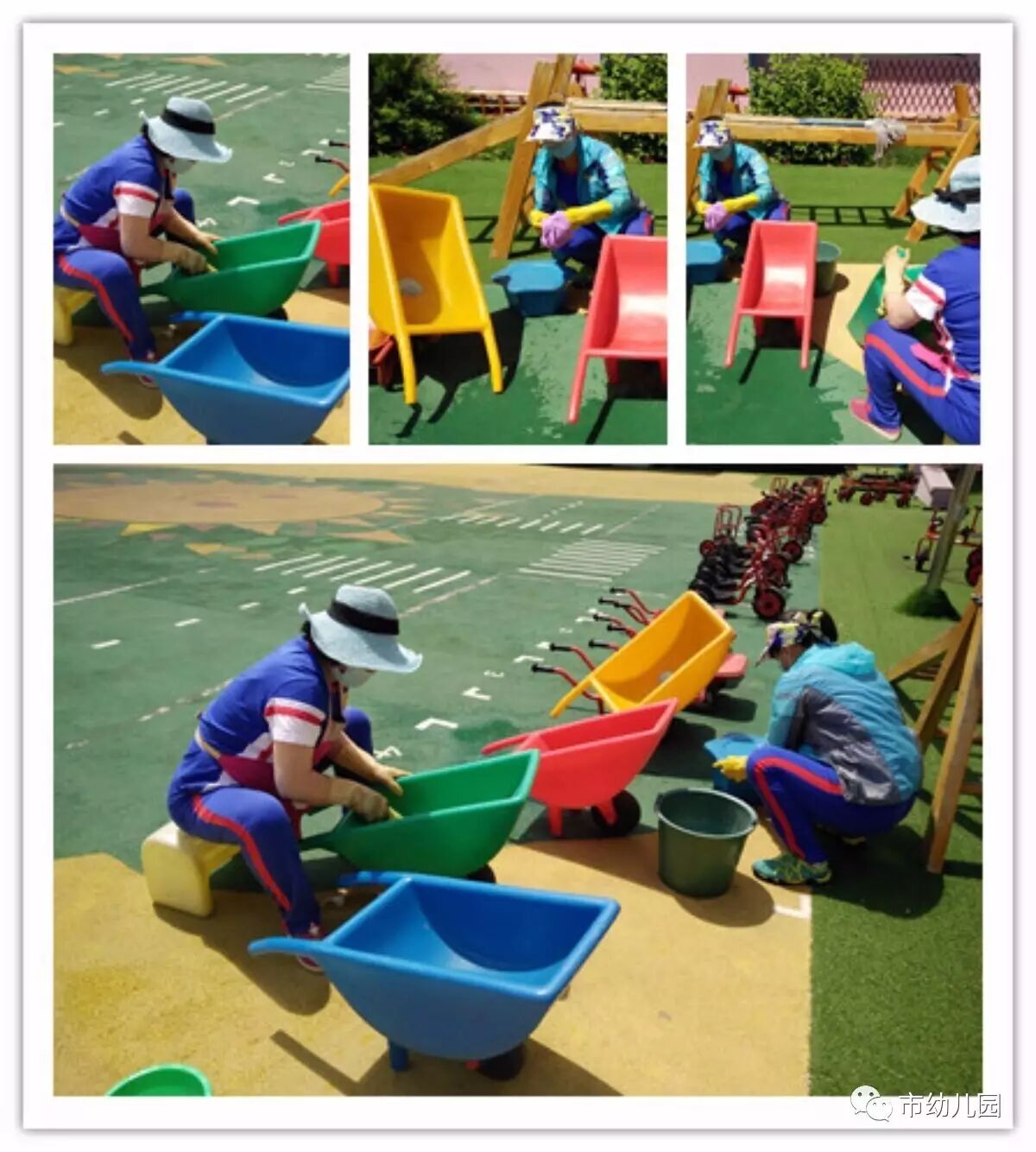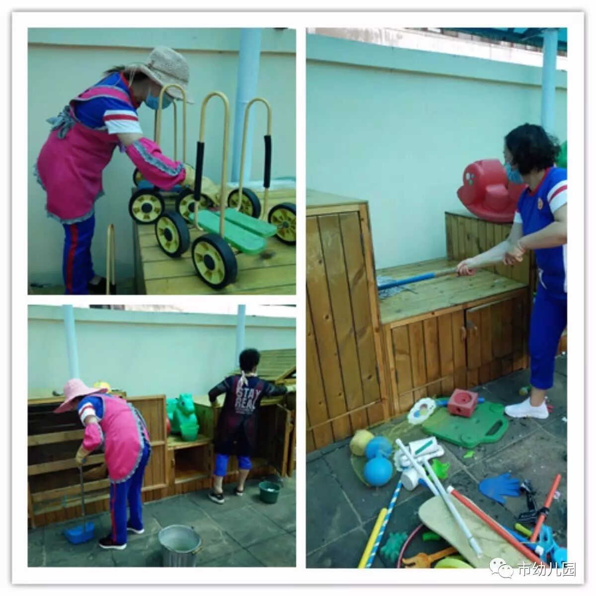 有了这些老师们的辛苦付出,市幼的孩子们一定会在更安全、更干净的玩耍中快乐的成长。