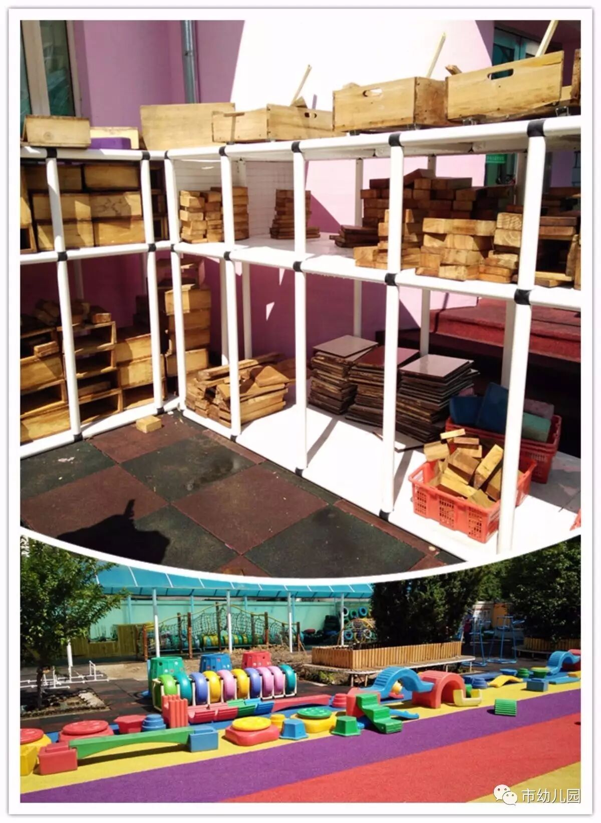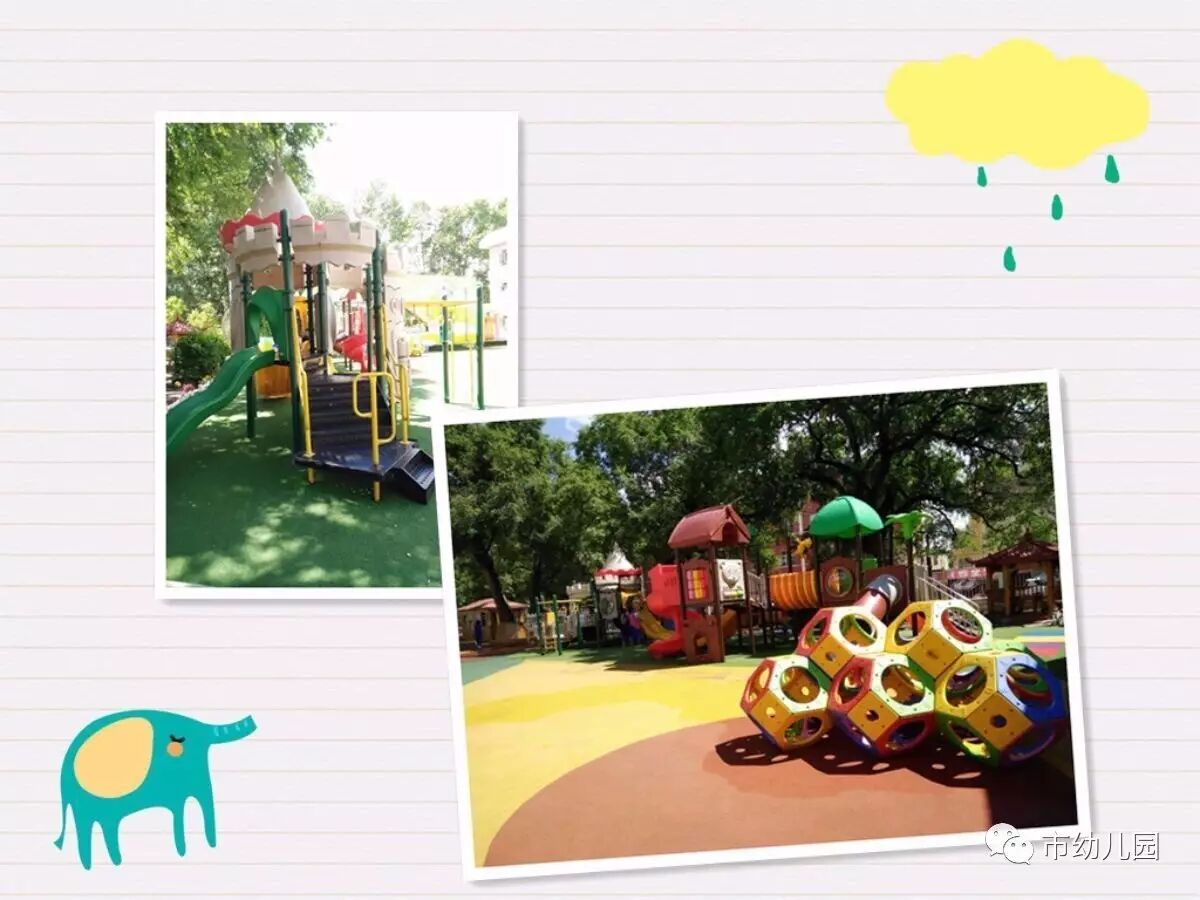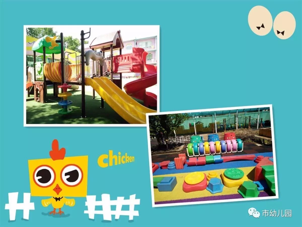 看,消毒后的体育器械和大型玩具多么的干净!