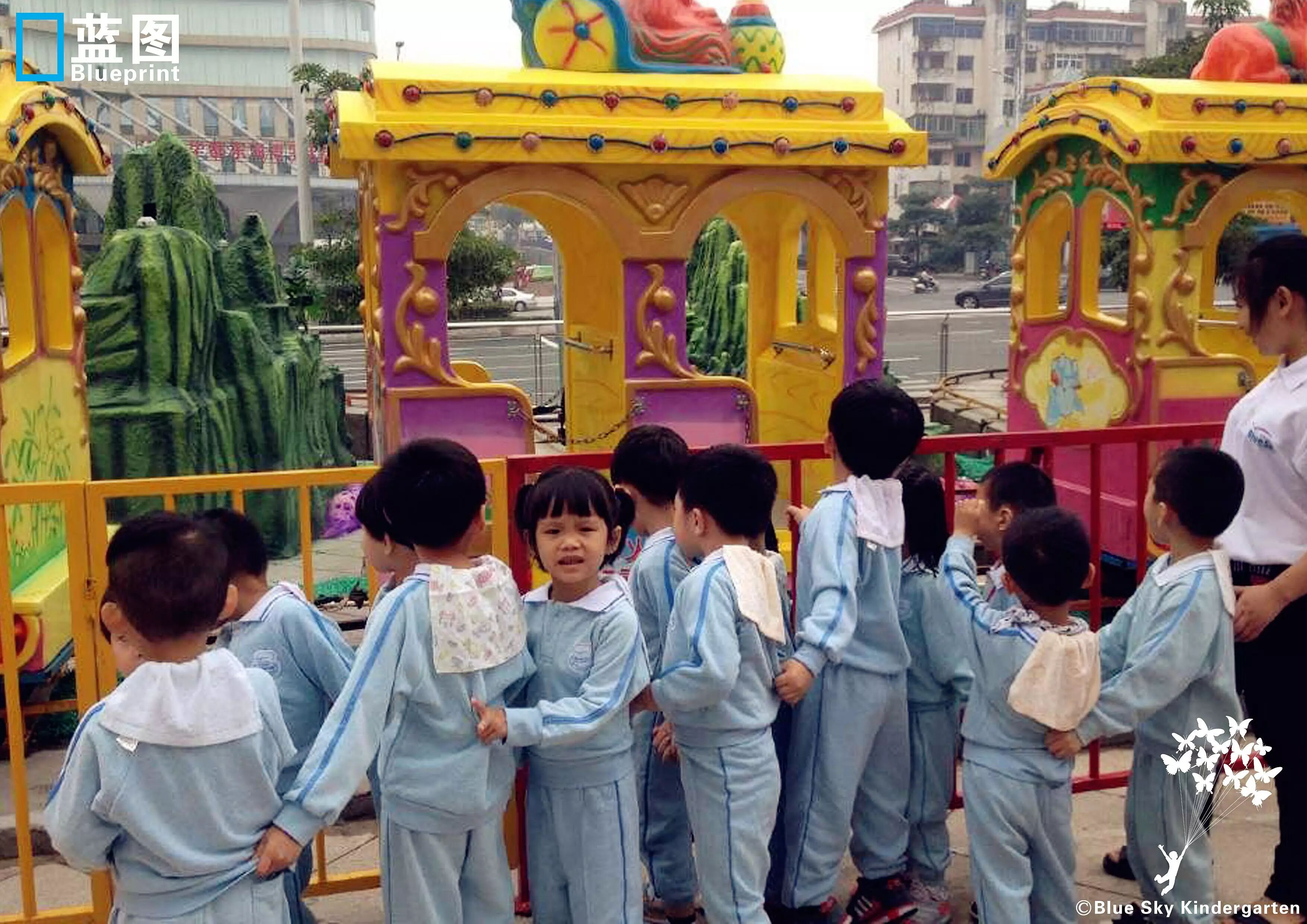 最近,我们小段就在开展"玩具总动员"的主题活动.孩子们从家里带来了自己最喜爱的玩具,放在了班级的"玩具角".到了玩玩具的时间,小朋友们就拿出来互相分享.一时间,教室里,走廊上,都充满了玩具的身影.最后,我们小段老师决定围绕"玩具"进行一次户外实践活动-"走近玩具大世界",参观泉州东海湾亲子广场里的一些大型玩具,了解这些玩具的玩法及分类.