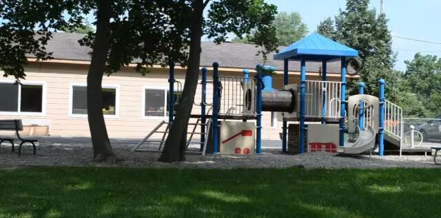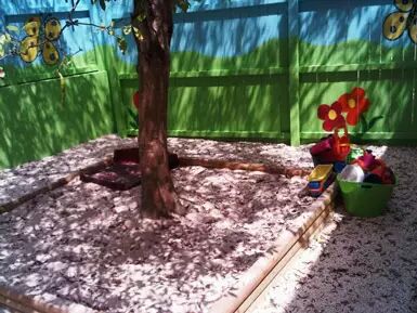 接下来的地表为木屑,上面设有户外唯一昂贵的大型攀爬滑梯设备,小朋友既可以攀爬滑行,也可以躲在设备下面进行比较安静的活动。