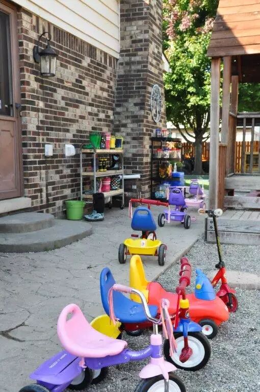 比如户外会有各种球和小车等带轮子的玩具,同时也会有大型的攀爬器械,轮胎、绳索或管子做成的自制器械等。