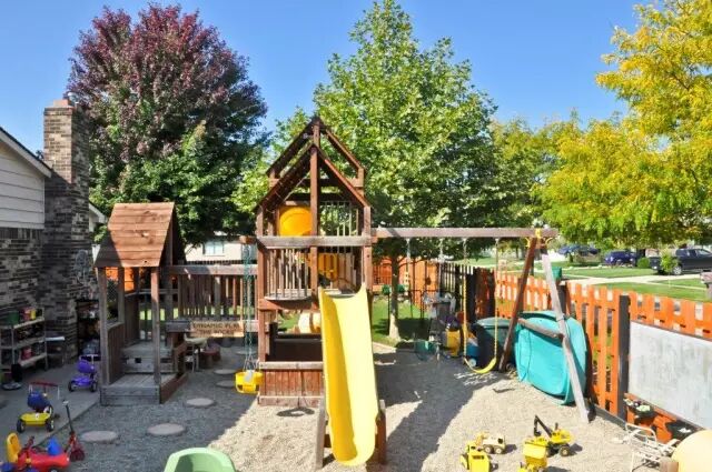 大型游戏场上也不是单一的材料,草坪、木屑、塑胶垫都有自己的一席之地。