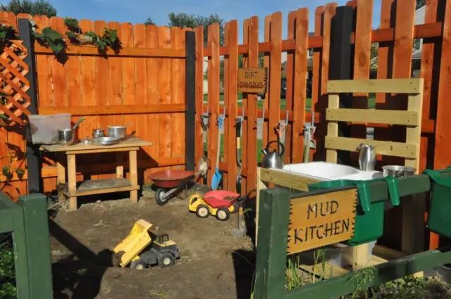 木屑活动区下面是一片有坡度的草地,小朋友既可以在春天滑草,也可以在冬天滑雪,另外还可以组织在草地上的野餐。