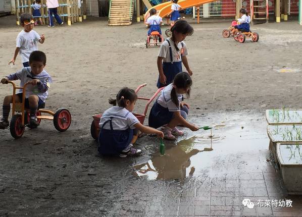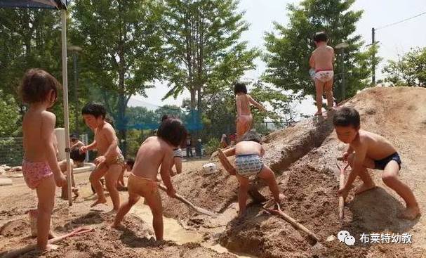 泥沙这些东西变化多、可塑性强,是孩子最喜欢的活动。特别是“玩泥”,在日本幼儿园是很普遍的户外活动。
