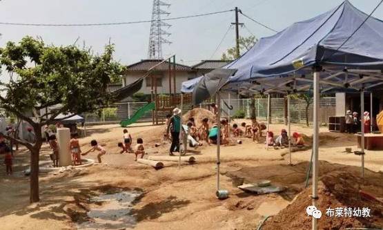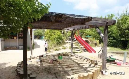 日本幼儿园户外环境大多有沙土操场、沙土堆、 泥沙池、游泳池以及攀爬架、滑梯、土坡、秋千、单杠等设施。