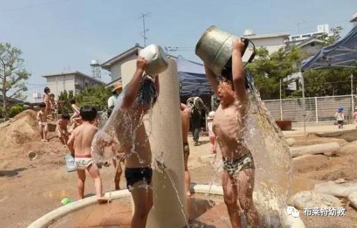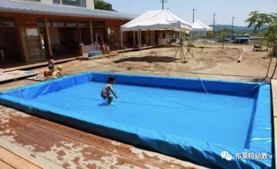 有的日本幼儿园有很大的户外泳池,一般每周均安排游泳活动,主要也是为了让孩子接触水、戏水玩耍。