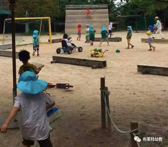 当日本幼儿园的操场随处可见沙土地和木制玩具时,我们的操场正被塑胶地、人造草坪和工厂生产的各种大型塑料玩具所覆盖;