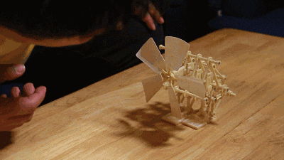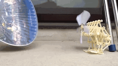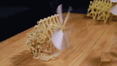 而动力来源依旧是风能,简单的用嘴一吹就可以行走起来