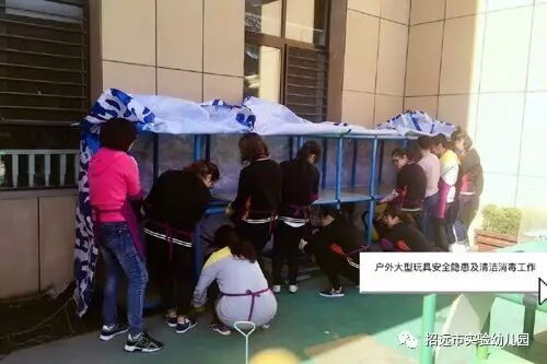 春暖花开的季节正是幼儿户外活动的最佳时节,孩子多进行户外活动接受阳光,空气和水的沐浴,能锻炼四肢,增强体质。由于春季是传染病多发季节,为了做好传染病的预防工作,给孩子们提供安全、干净、整洁的活动场地,我园每周对户外大型玩具进行安全隐患排查及清洁消毒工作。