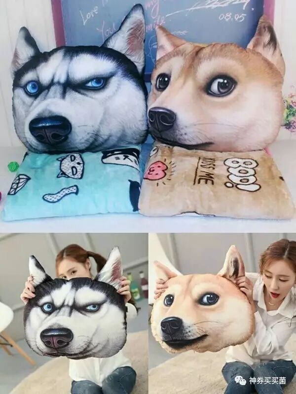 3D搞怪神烦狗汽车头枕空调毯抱枕手捂