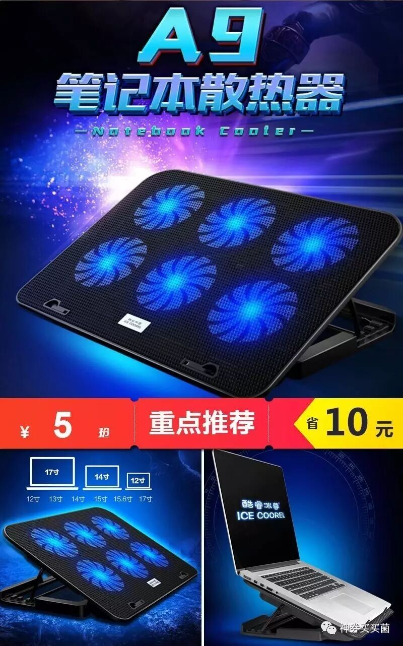 【史上最低价】6大风扇,高速马达,均匀散热,风力可调,5档角度,轻巧防滑,让笔记本拒绝发烧!