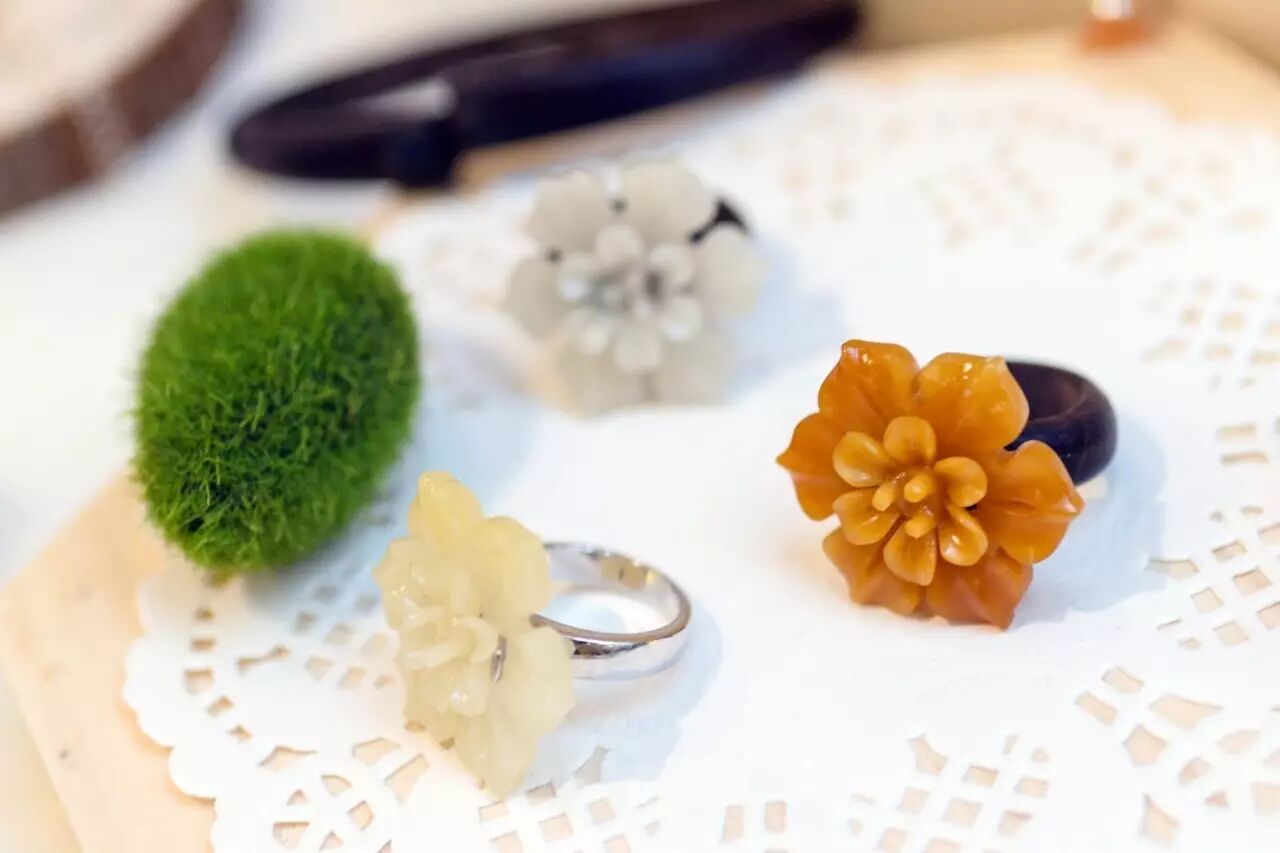 这些戒指太美了,比图片精致100倍!嗷嗷嗷~~都是用石头制作的你敢信吗?!在传统技艺的基础上,还进行了创新。他相信,寿山石也可以很时尚,还给寿山石赋予了社交属性。Hangzhou.Me的专属logo就是他设计制作的哟~