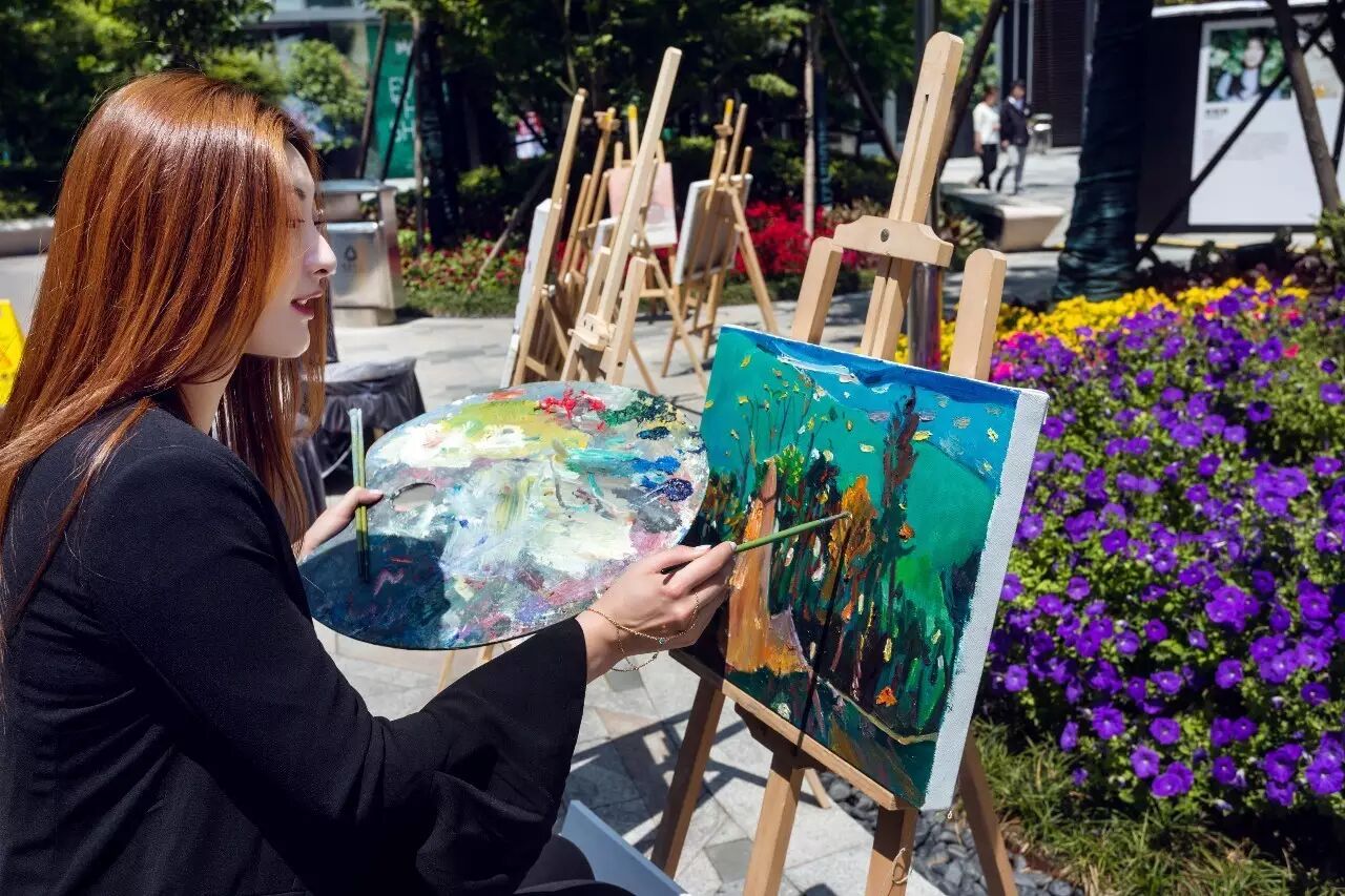 画画的姑娘太美啦,不会可以学嘛!就在嘉里中心外围,整排的画架都在等着你,还有定时的现场教学哦!