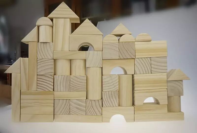 这款积木每块都偏大,比起小块积木,搭建起来更有建筑的成就感。有圆柱、正方体、长方体、拱桥、三角等经典形状,原木色,看上去笨笨的,傻傻的,而把玩搭建这些积木的孩子,却能创造出千变万化的世界,孩子们看上去是聪慧的、沉静的,快乐的。