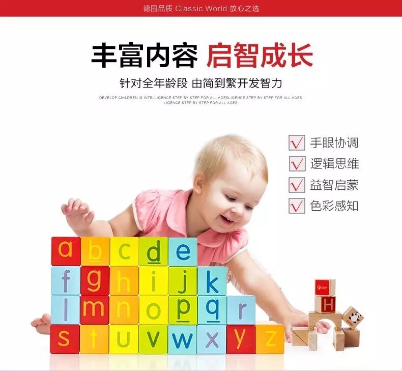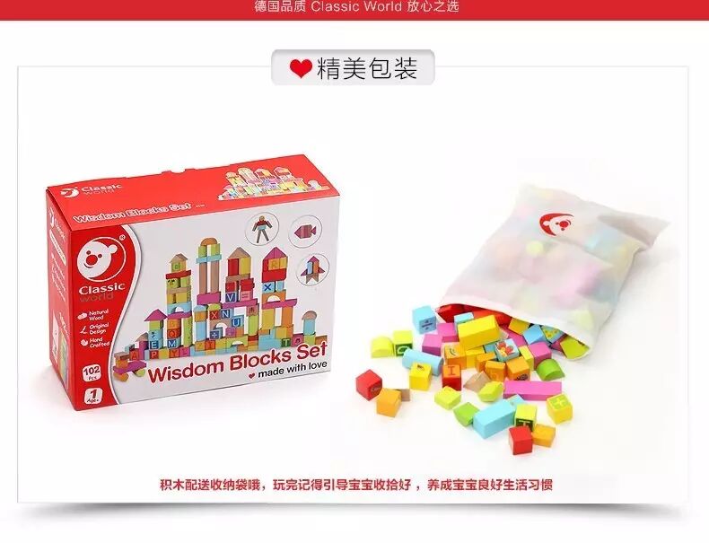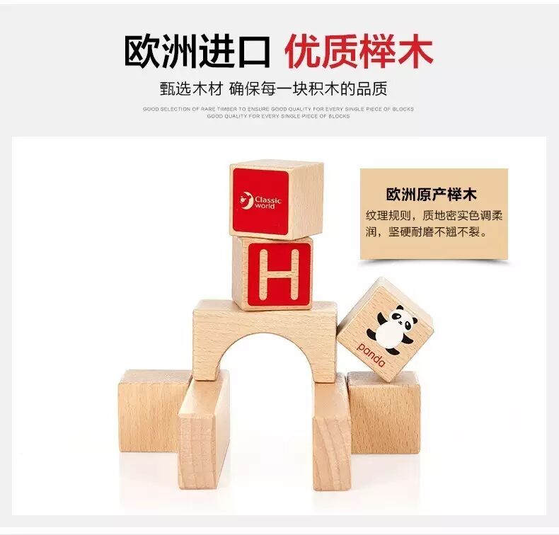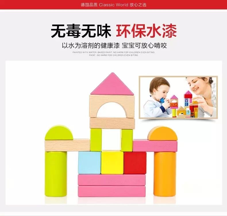 1,Classic world积木选用进口榉木,环保水漆,无毒无异味;