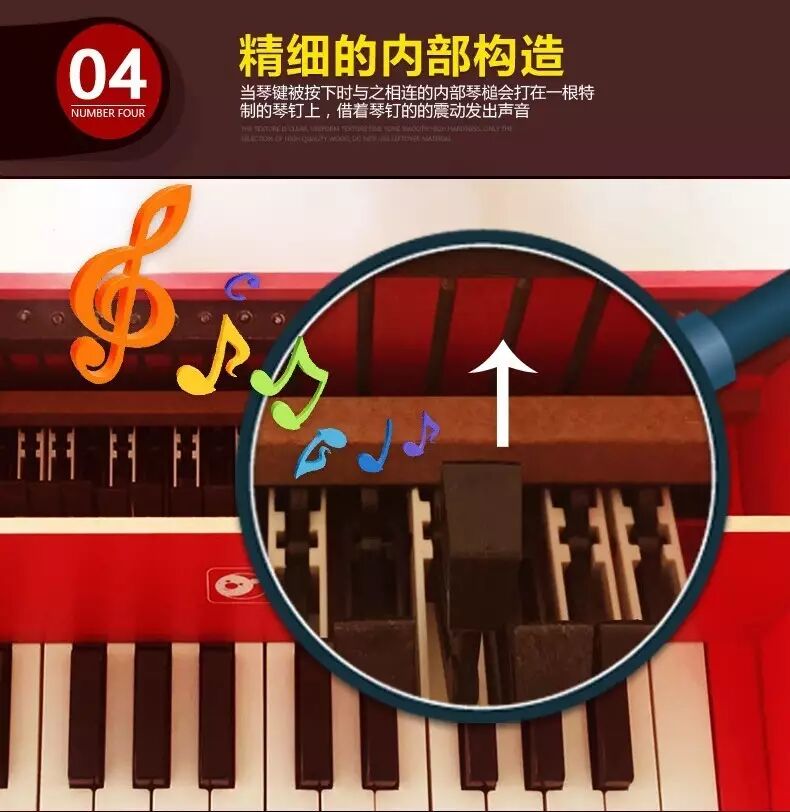 走心细节!为了方便宝宝练习钢琴,琴键上还贴有指导性琴键贴标,帮助宝宝快速熟练学习琴曲。