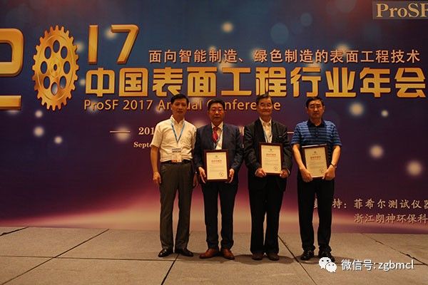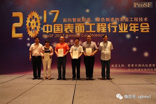 获得“2017年中国表面工程行业科学技术奖”一等奖的项目的有:基于高焓等离子技术制备水力机械表面功能材料关键技术研发与示范应用;无氰镀银工艺技术开发及应用示范。获得二等奖的项目有:高耐蚀宽范围三价铬蓝白钝化剂;锌合金无氰、无磷电镀关键技术开发及产业化;建筑门窗五金环保型电镀技术及其循环利用的研究与开发;电镀生产线槽边回收与高效回用绿色工艺技术开发与应用;高温合金深拉深件的喷漆保护技术。获得三等奖的项目有:太阳电池晶态薄膜的定向生长和梯度效应研究;电镀废水处理与资源化利用关键技 术研究及应用;绿色环保型三价铬硬铬电镀技术;ZICOLLUM?环保型纳米无铬锌铝涂料之研发及应用;开关设备关键零部件镀银技术的研究与应用;涂装线降VOCs高固3C2B环保改造技术;《钢材热镀锌工艺生产技术实践应用技术问答1000例》;获得优秀奖的项目有:铝合金无铬转化涂层的研究与开发;木制玩具滚喷漆废气收集净化工艺与设备;热浸镀 锌锌烟搜扑与净化(锌烟除尘);高耐蚀性无须镀锌工艺。