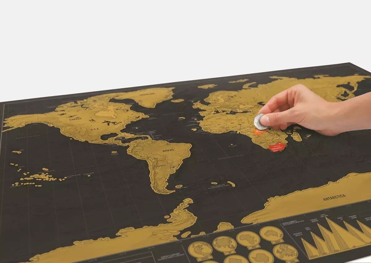 想用地图秀出你曾去过的国家吗?刮刮地图可以满足您的愿望! 这款布满复杂地理细节的可涂刮地图的最外面是一层镀金薄片,用硬币轻轻一刮便呈现出新的世界。