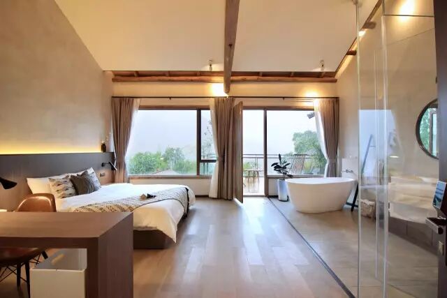 其中几个房间更是直面山谷,清晨醒来,不下床起个身,便能看透,原本多奢侈的一件事儿却变得唾手可得,画面感十足。