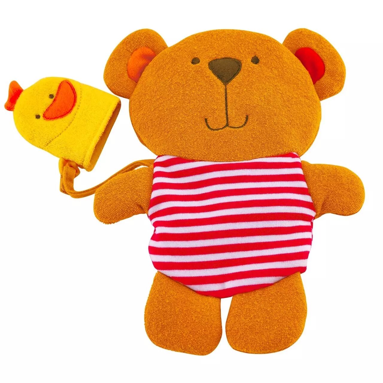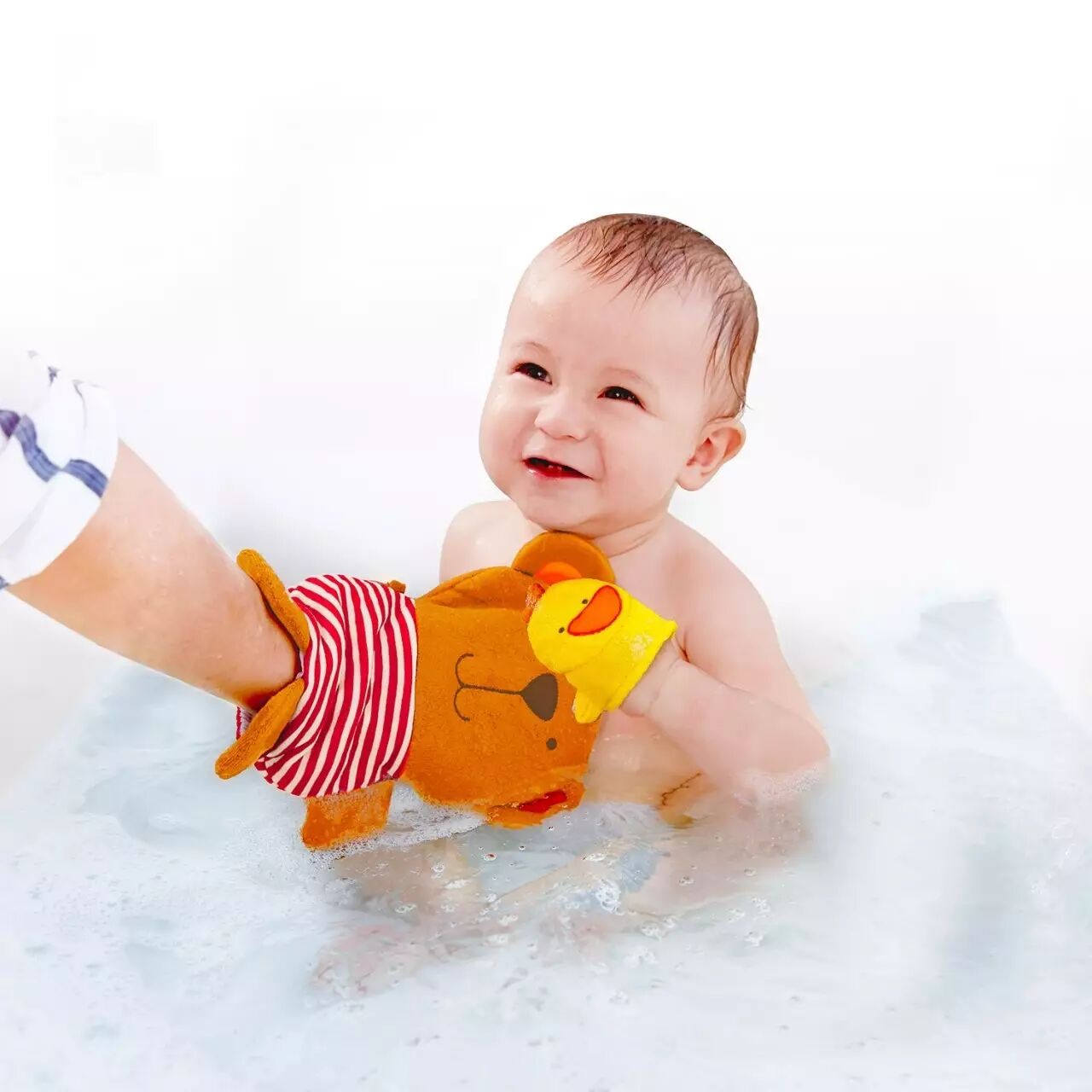 爸爸妈妈可以用这款可爱又舒适的沐浴手套一边给宝宝洗澡一边扮演手偶游戏。