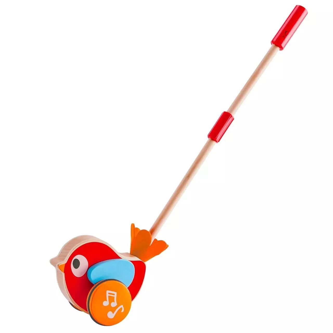 当宝宝推拉的时候,莉莉鸟会发出八音盒的音乐旋律,而且它的翅膀也会上下摆动哦!