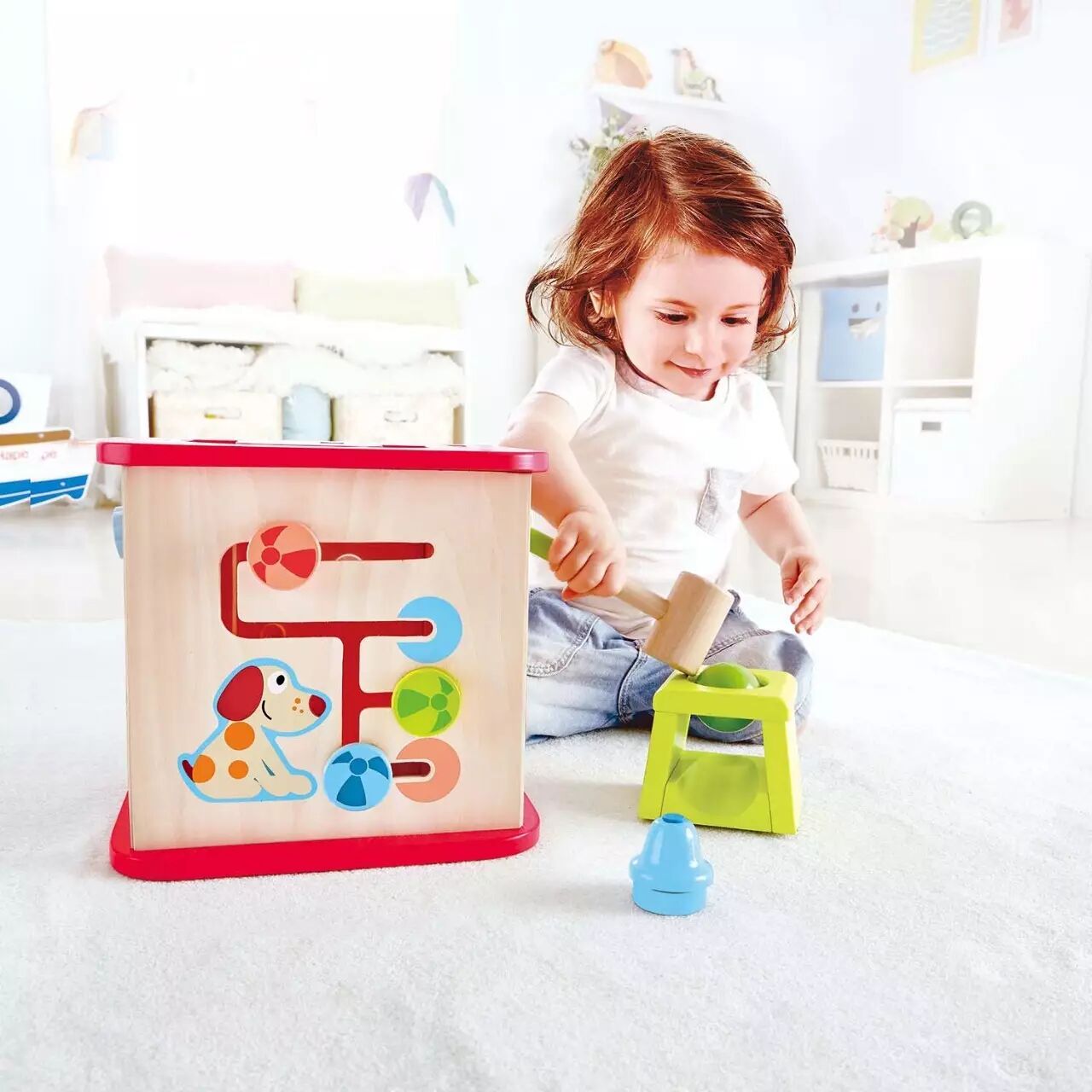 拥有五面不同玩法的立方格,包含迷宫,拼图,图案配对,齿轮探索等,宝贝任意转到哪一面都乐趣无穷。