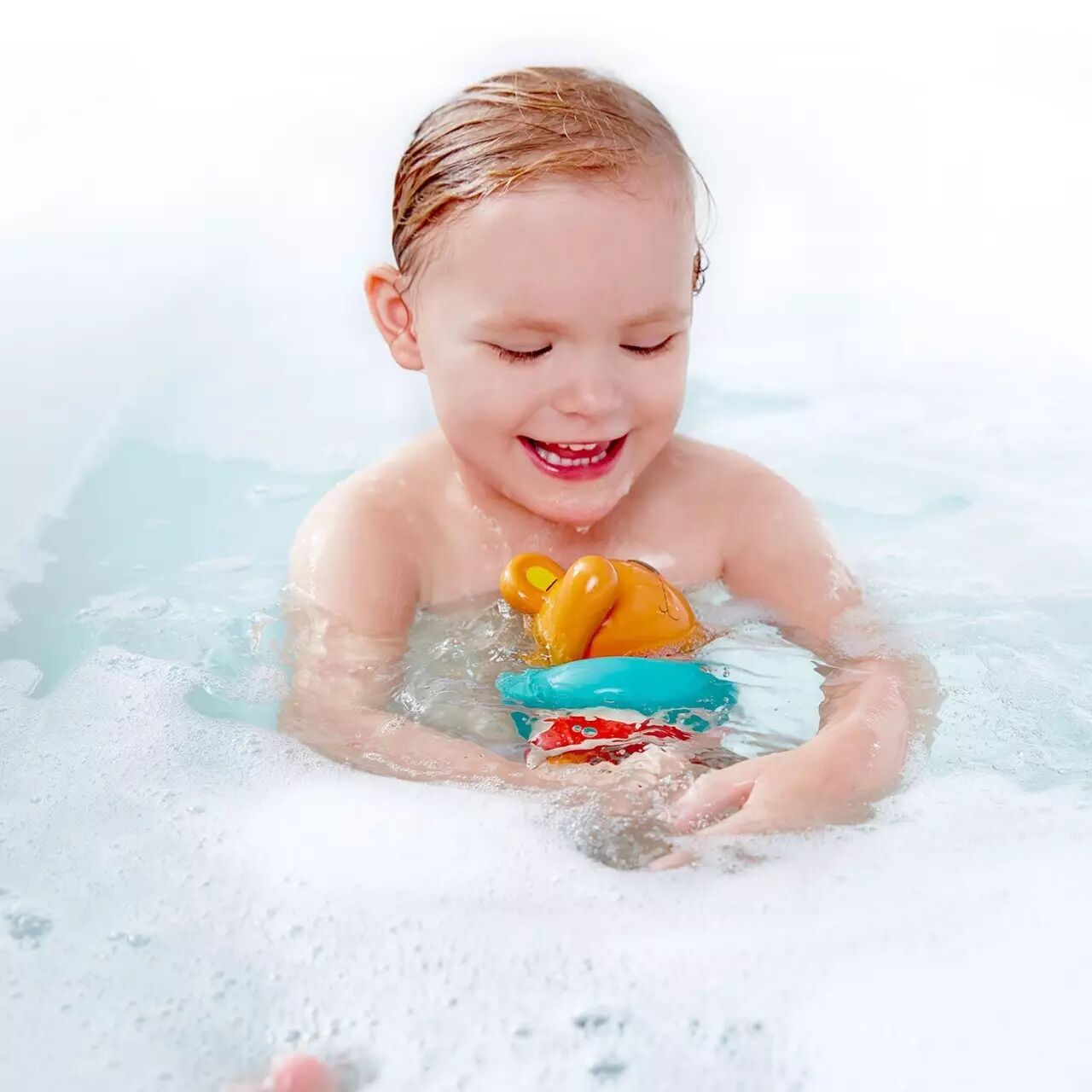 可以让宝宝拿着小鸭子手套,与爸爸麻麻的“泰迪熊”手套聊天。讲故事似的手偶互动能激发宝宝的创造能力,也能顺便教会孩子怎么洗澡哦~