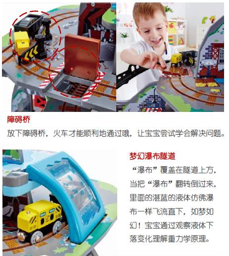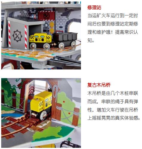 作为一个独立的套装,这是一个不需要拼搭的火车轨道,但圆盘顶端具有一定的坡度,所以满足了年龄比较小的宝宝对上升下降过程的好奇。同时,这款火车轨道还可以和上面的采矿套装强强联手,拓宽宝贝玩具王国的“版图”哦~
