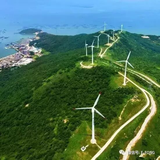 与大角山相连,远远望去一座座大风车屹立在山上,足足绵延五公里