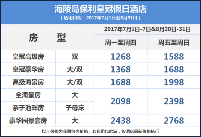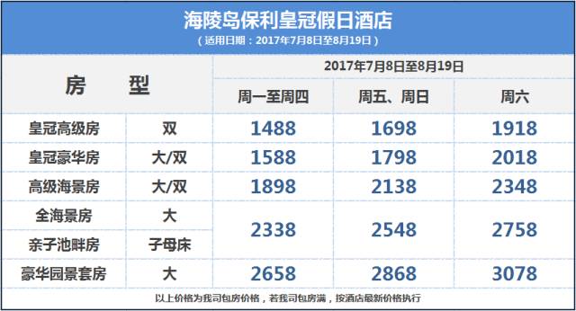 增加早餐参考:1.2m以下免费,1.2m-1.4m儿童79元/位;1.4m以上儿童按成人157元/位;