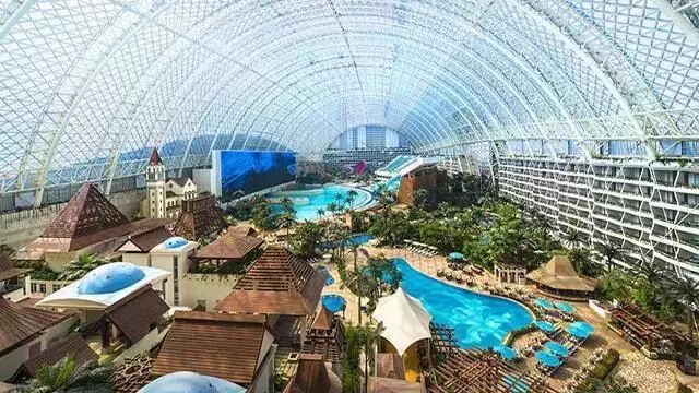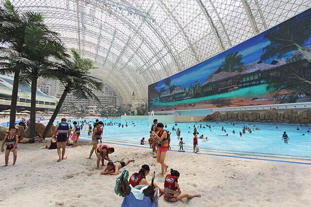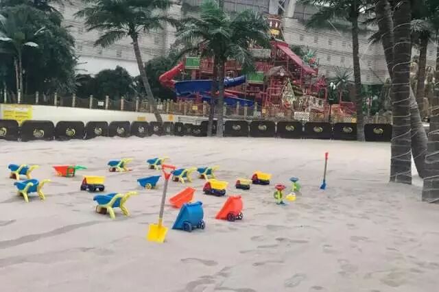 乐园内拥有长达400多米的海岸线,还有350多平米的室内人造海滩,海滩上铺满了从海边运来的海沙。
