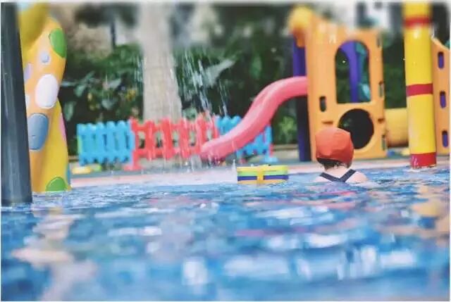 戏水池周边提供了各种水上玩具,让孩子不受季节限制,随时都能享受耍水的乐趣。