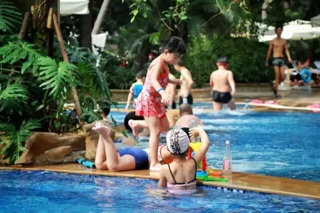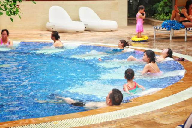 儿童池的水温保持在39摄氏度,池水也不深,还配备有救生员,不用担心孩子的安全问题。