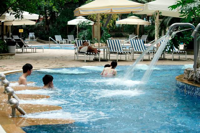 天堂岛有4处39°温泉池,5处42°温泉池,都是人体最适宜的温度。虽说成都还残留着些许寒冬的余威,但温暖的池水仿佛让人置身热带。