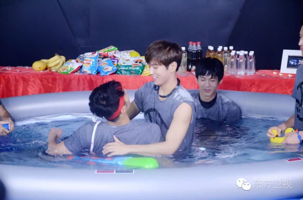 泳池虽然不大,成员们却玩得十分火热。他们不仅玩了真心话大冒险,还对网友的一些问题进行了解答。王燕阳借着火辣的气氛趁机“表白”李汶翰:“其实我很喜欢你”李汶翰瞬间懵了,王燕阳接着补了一句“兄弟间的喜欢”。随后两人在泳池拥抱,承诺要做一辈子好兄弟。更有冯瀚圃、田明鑫、王燕阳、李汶翰四位小鲜肉的猛料劲爆来袭,你准备好聆听了吗?