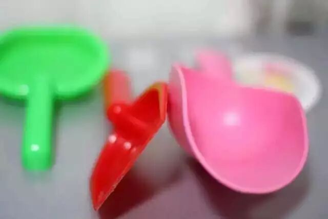宝宝把它随便往脸上贴,麻麻一点都不担心。因为和家里之前的沙铲一比较就知道了,不仅超值而且质量超级棒,再也不担心宝宝被玩具划伤了: