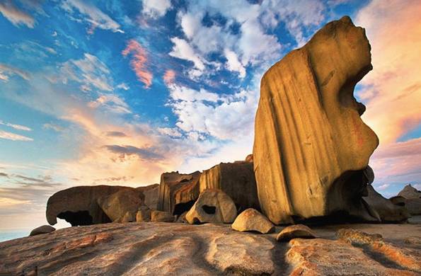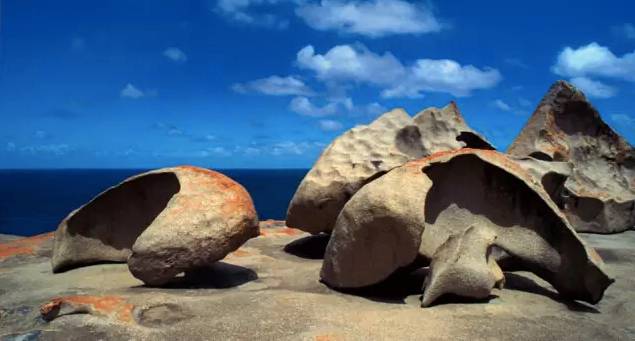 下午游览弗林德斯狩猎国家公园,观赏令人称叹的神奇岩石(Remarkable Rocks),战舰拱门(Admirals Arch)以及新西兰海狮栖息地。