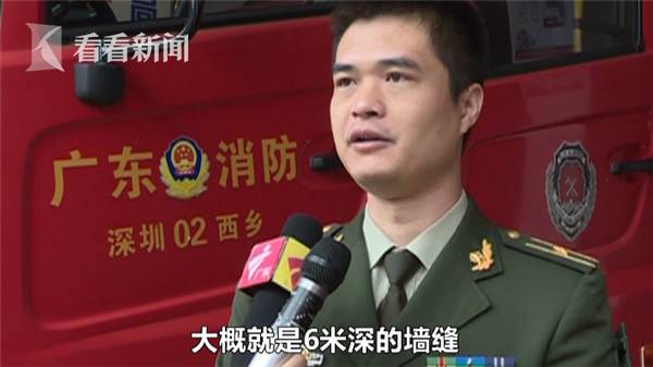 当时被卡住的小男孩身处的墙缝大约有6米深,在下滑过程中衣服也全部套在头上。