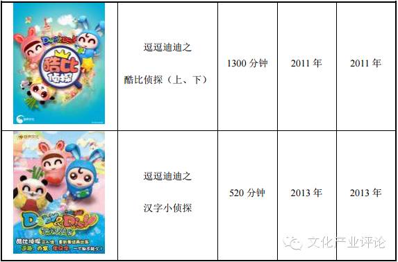 咏声已制作完成并播出该系列三部动画片《逗逗迪迪爱探险》、《逗逗迪迪酷比侦探》和《逗逗迪迪汉字小侦探》,总时长 3,120 分钟。