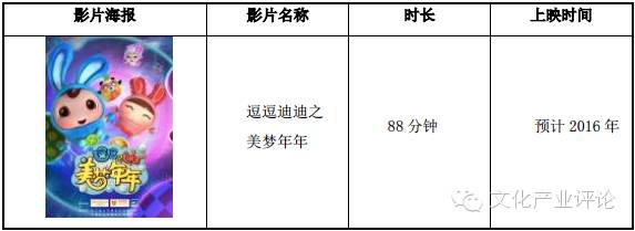 目前已完成基于该动画片的首部 3D 大电影《逗逗迪迪之美梦年年》的制作,并获得国家颁发的《电影片公映许可证》。
