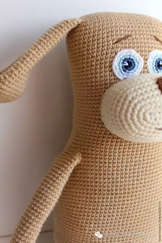 一直很爱这种大大的玩偶,可以当玩具,又可以当靠枕,两不误!这只狗狗超萌,正好家里的小侄女也喜欢,要让我钩一个给她。对着一脸懵的外文研究了好久,终于将狗狗翻译出来,哈哈哈,很有成就感。
